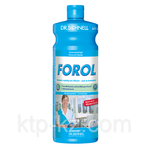FOROL (Dr.Schnell) – универсальное средство без спирта для очистки любых водостойких поверхностей. Идеально подходит для уборки кухни, гостиной, спальни и других помещений. Эффективно удаляет грязь и жир, не оставляя разводов и следов. Подходит для всех методов очистки.